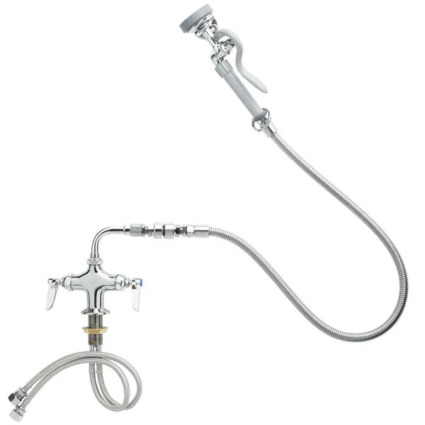 Waterloo 1.15 GPM Wall-Mounted Pre-Rinse Faucet With 8″ Centers And 12″ Add-On Faucet